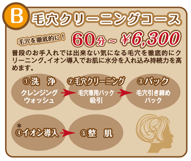 B.毛穴クリーニングコース 60分~ ¥6,300-